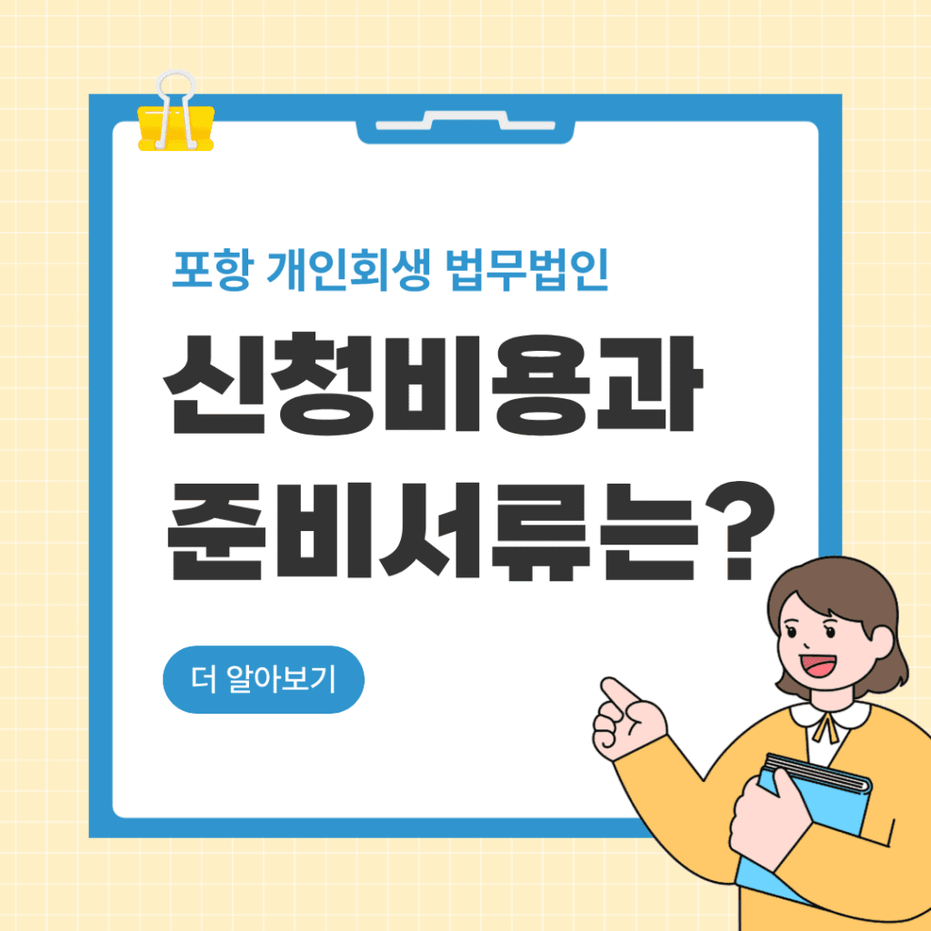 이번 글에서는 포항개인회생을 진행할 때 발생하는 신청 비용과 필요한 준비 서류에 대해 정리해보겠습니다.